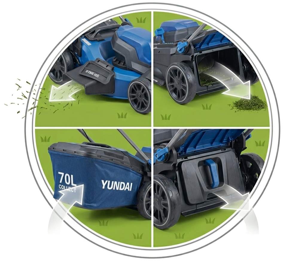 Grass Collection: Utilize the massive 70L ventilated bag for a clean, debris-free finish.
